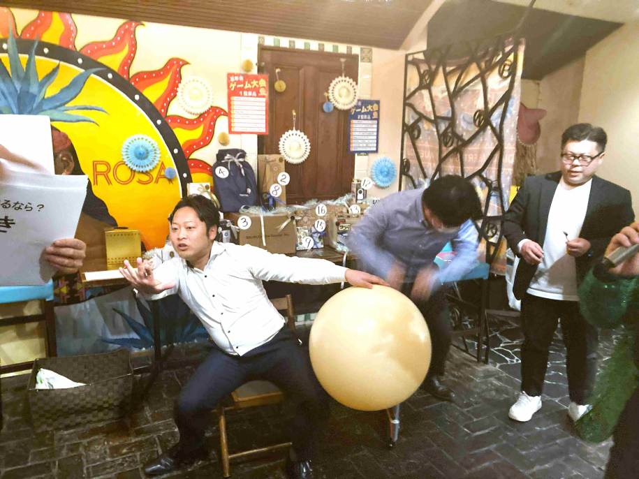 最後は風船を膨らませている間にチーム内でお題に対しての回答を合わせるゲームです!